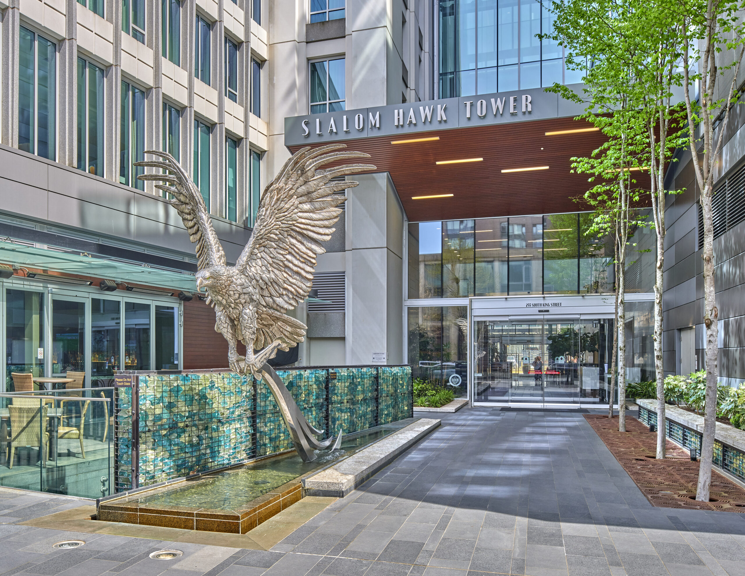 255 South King Street, Seattle, WA 98134Slalom Hawk Tower, in Seattle’s historic Pioneer Square neighborhood, sits atop the development’s podium base. The iconic office development shares the parking garage, conference rooms, and other facilities with the adjacent Hilton Embassy Suites (255 South King Street LP, Phase I). Slalom Hawk Tower boasts sweeping views of Puget Sound, the Downtown skyline, and the Stadium District, home to the NFL Seahawks, MLB Mariners, and MLS Sounders. The project was completed in February 2018.